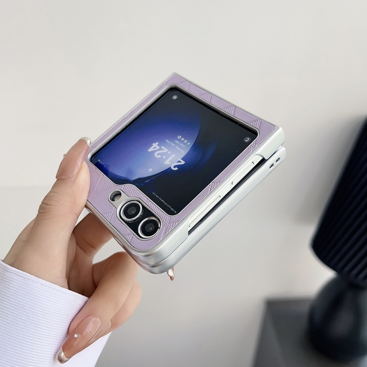 Funda para Teléfono Samsung Galaxy Z Flip3 5G Cuero a Cuadros con Pintura Nacarada y Forma de Diamante (Negro)