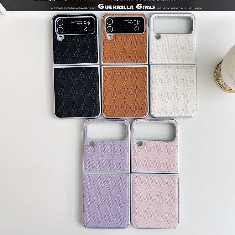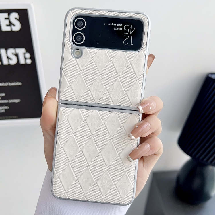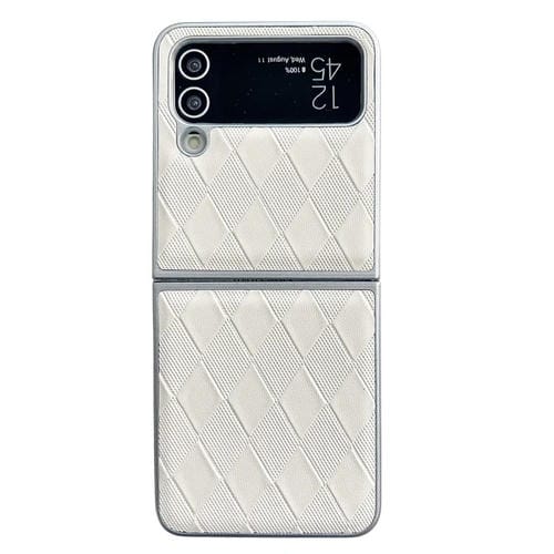 Funda para teléfono Samsung Galaxy Z Flip3 5G Cuero a cuadros con pintura nacarada y forma de diamante (Plata)