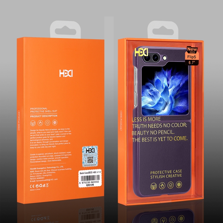 Estuche para Teléfono Plegable Samsung Galaxy Z Flip5 Hbc-212 Cuero Liso Integrado (Azul)