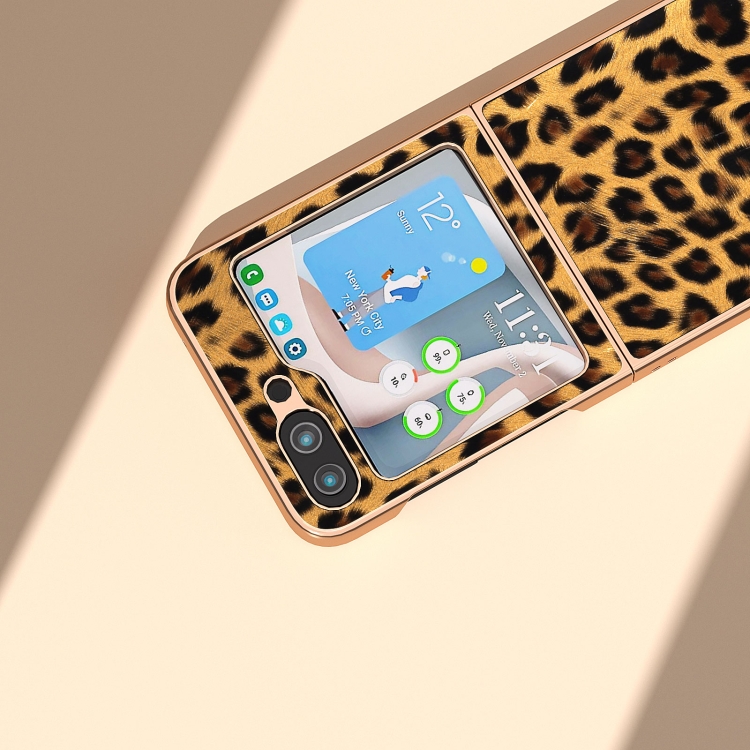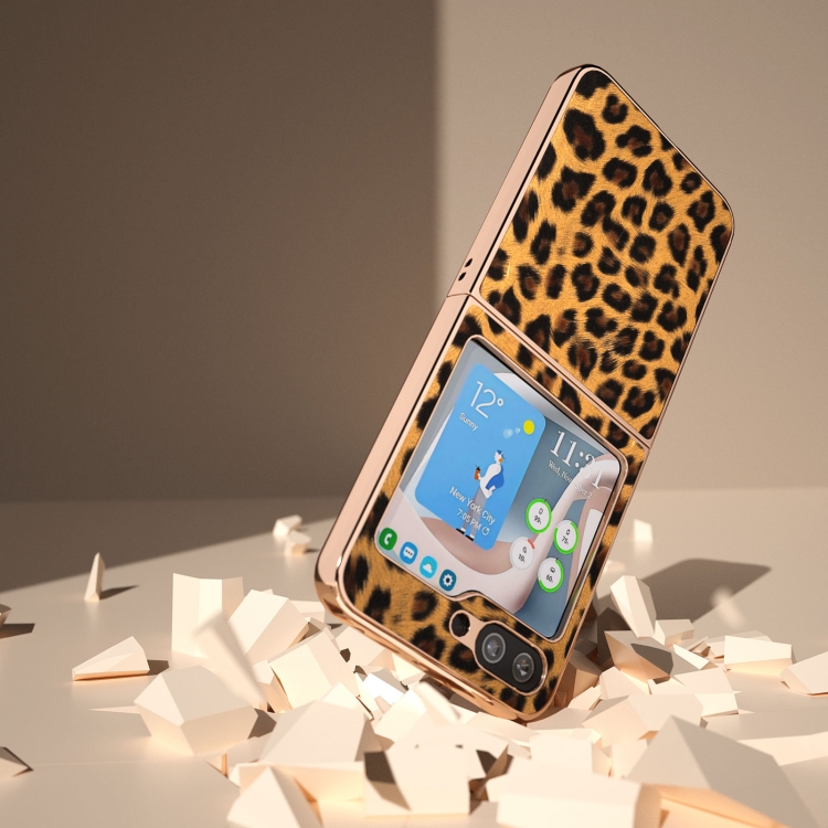 Funda para Samsung Galaxy Z Flip5 Nano Plating Leopard Print Función Protección (Oro)