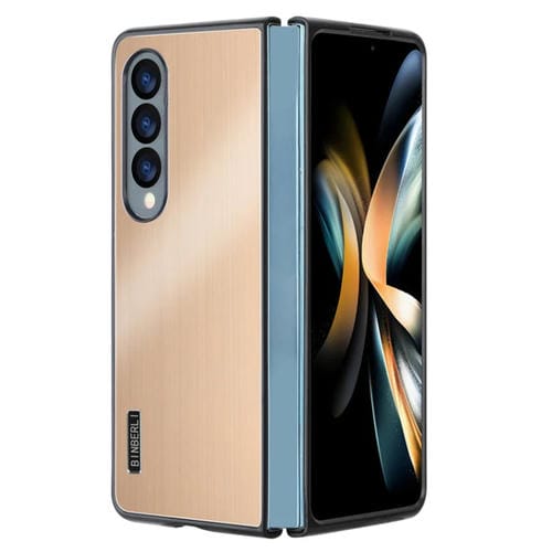 Estuche para Teléfono Samsung Galaxy Z Fold4 Híbrido Aleación de Aluminio Cepillado a Prueba de Golpes (Dorado)
