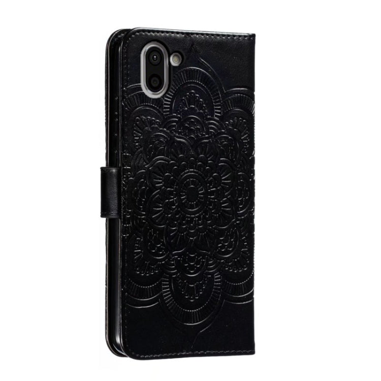 Funda de Cuero para Sharp Aquos R2 con Patrón En Relieve Sun Mandala (Negro)