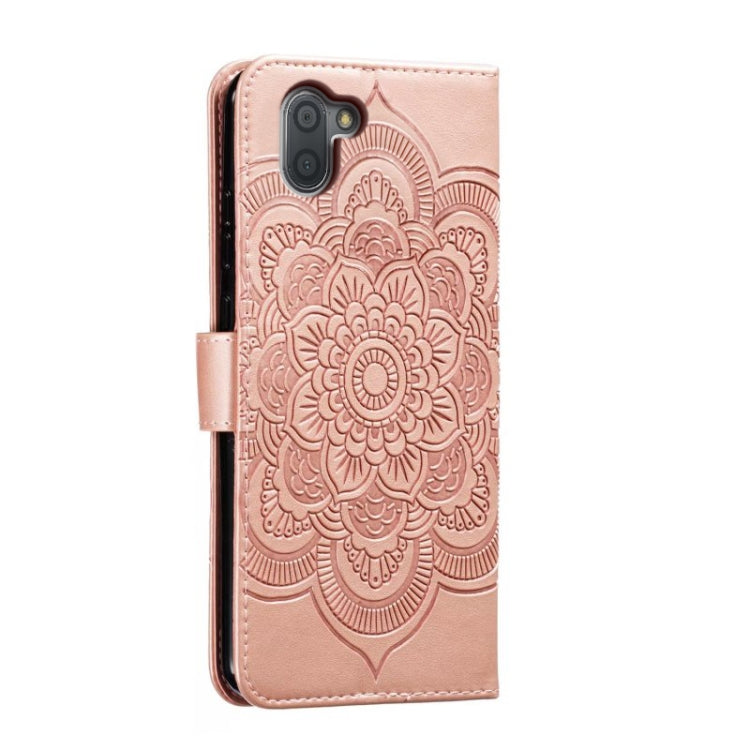 Funda de Cuero para Sharp Aquos R3 con Patrón En Relieve Sun Mandala (Oro Rosa)