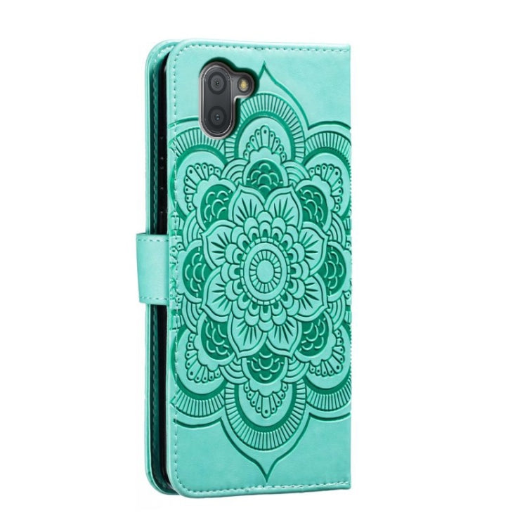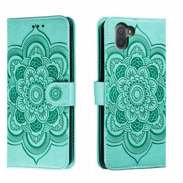 Funda de Cuero para Sharp Aquos R3 Sun Mandala con Patrón en Relieve (Verde)