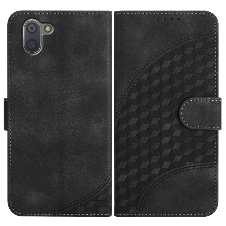 Funda de Cuero para Sharp Aquos R3 Yx0060 con Relieve y Cabeza de Elefante con Cordón (Negro)