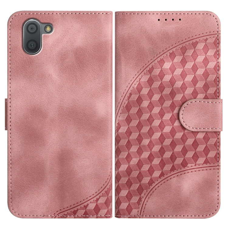 Funda de Cuero para Sharp Aquos R3 Yx0060 con Relieve y Cabeza de Elefante con Cordón (Rosa)
