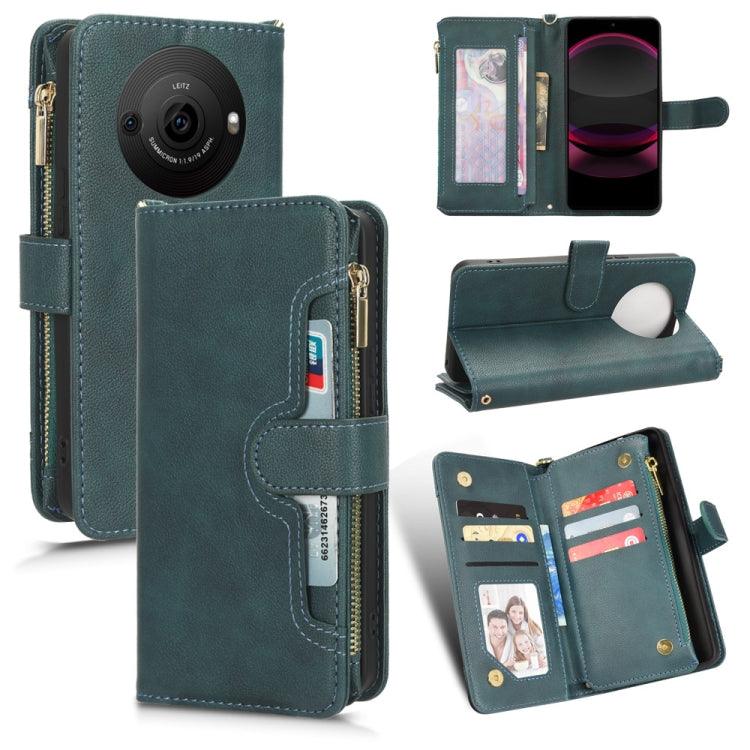 Funda de Cuero para Sharp Aquos R8 Pro con Textura Litchi y Cremallera (Verde)