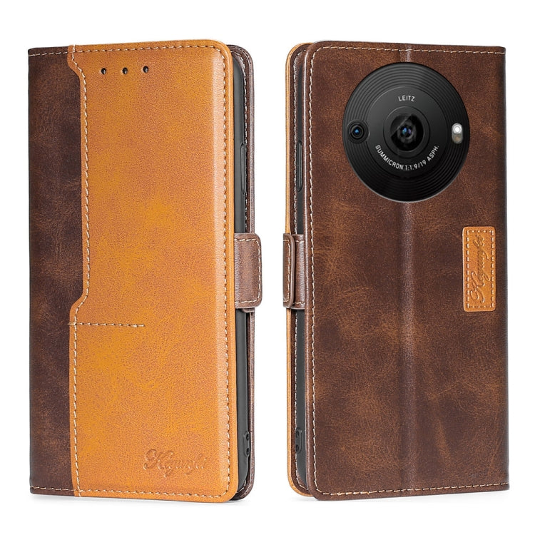 Funda para Sharp Aquos R8 Pro Sh-51D de Cuero con Hebilla Lateral (Marrón Oscuro + Dorado)