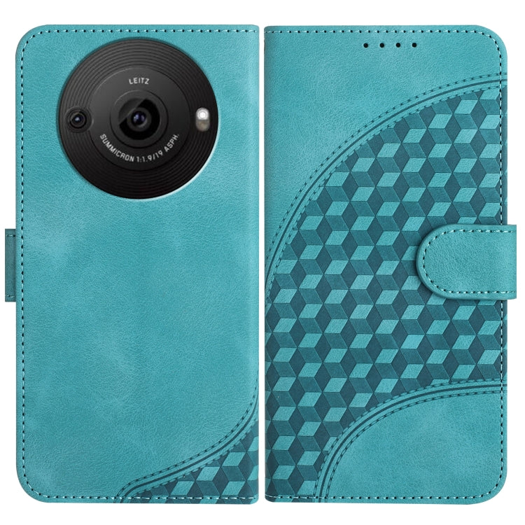 Funda de Cuero para Sharp Aquos R8 Pro Sh-51D Yx0060 con Relieve y Cabeza de Elefante con Cordón (Azul Claro)