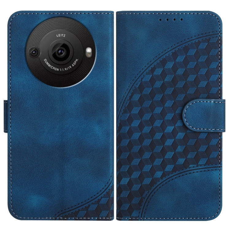 Funda de Cuero para Sharp Aquos R8 Pro Sh-51D Yx0060 con Relieve y Cabeza de Elefante con Cordón (Azul Real)