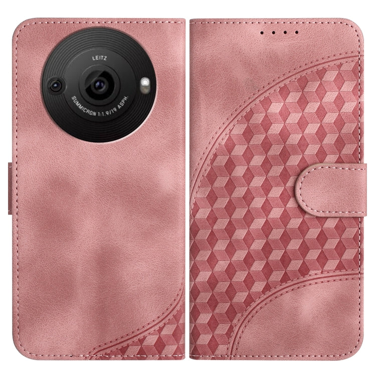 Funda de Cuero para Sharp Aquos R8 Pro Sh-51D Yx0060 con Relieve y Cabeza de Elefante con Cordón (Rosa)