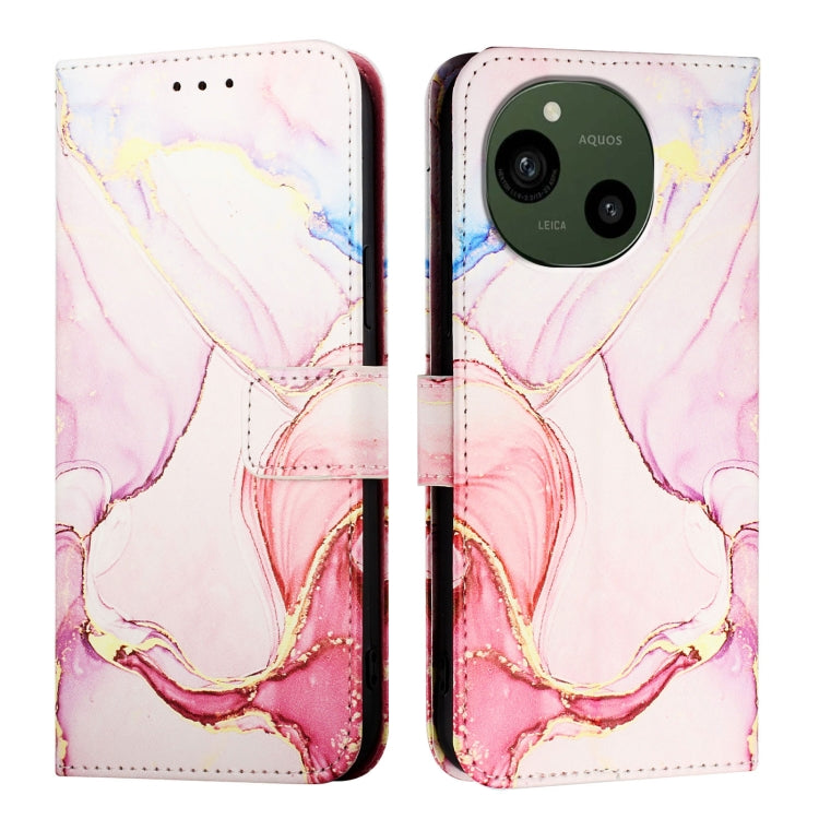 Funda para Sharp Aquos R9 Sh-51E Pt003 Cuero con Tapa y Patrón de Mármol (Oro Rosa)