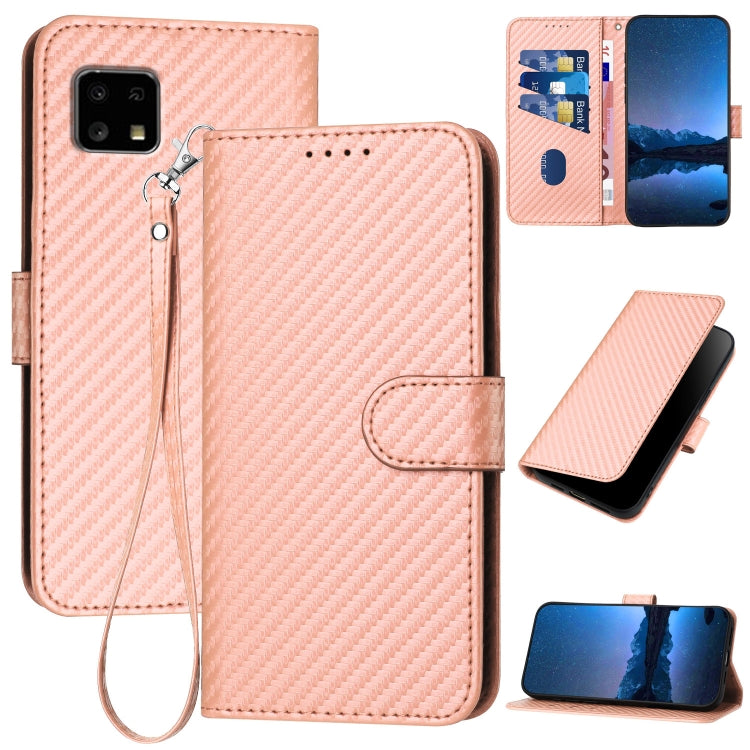 Funda de Cuero para Sharp Aquos Sense4 Yx0070 con Hebilla de Fibra de Carbono y Cordón (Rosa)