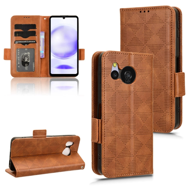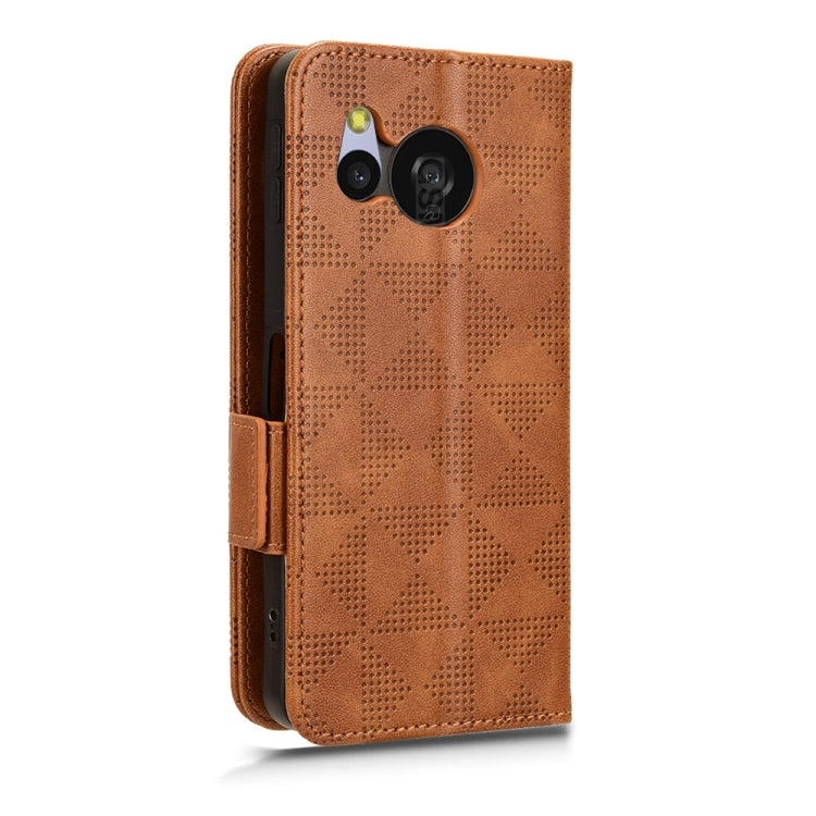 Funda de Cuero para Sharp Aquos Sense8 con Patrón de Triángulo Simétrico (Marrón)