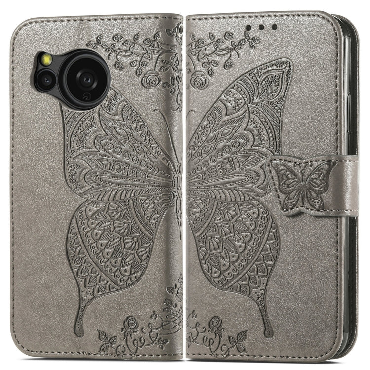Funda para Sharp Aquos Sense8 de Cuero con Relieve de Flor y Mariposa (Gris)