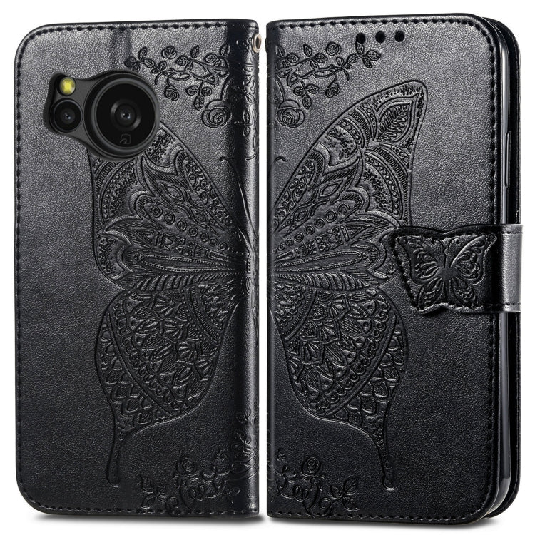 Funda de Cuero para Sharp Aquos Sense8 con Relieve de Flor y Mariposa (Negro)