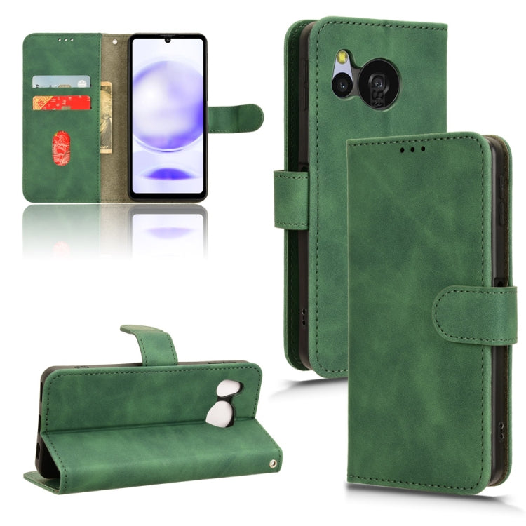 Funda de Cuero para Sharp Aquos Sense8 Skin Feel con Tapa Magnética (Verde)