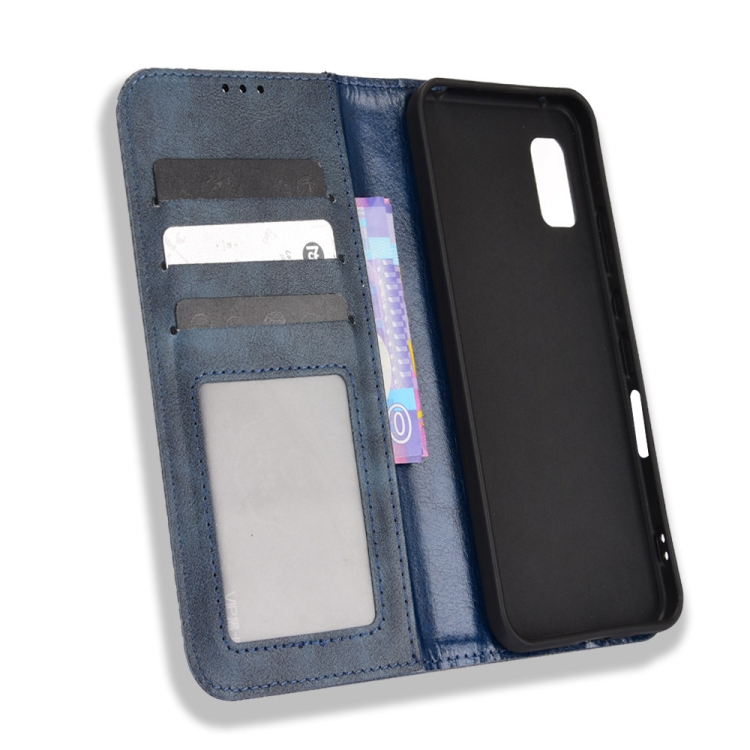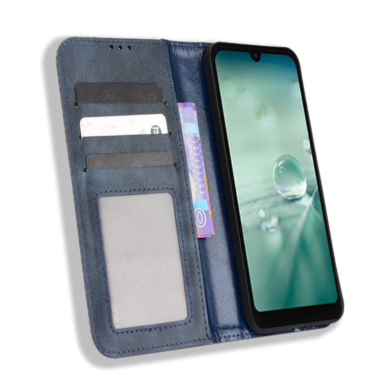 Funda para Sharp Aquos Wish con Hebilla Magnética y Texture Retro en Cuero (Azul)