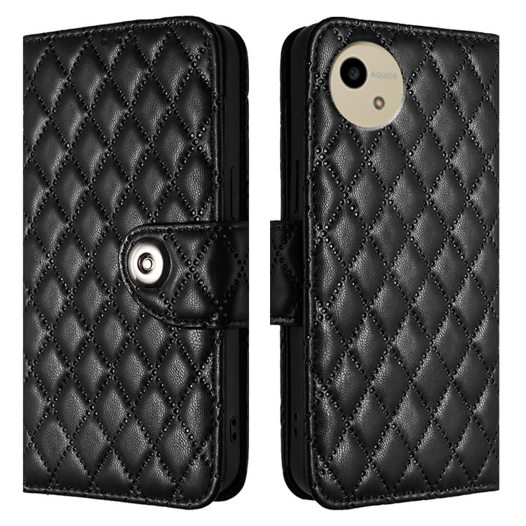 Funda para Sharp Aquos Wish4 Sh-52E con Tapa de Cuero Textura Rómbica y Cordón (Negro)