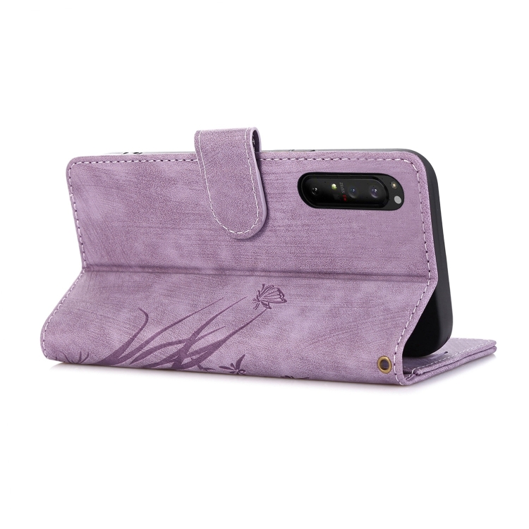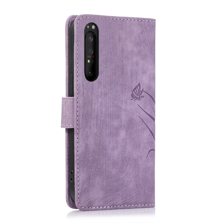 Funda para Sony Xperia 1 IV Cuero Relieve Mariposa Orquídea (Púrpura)