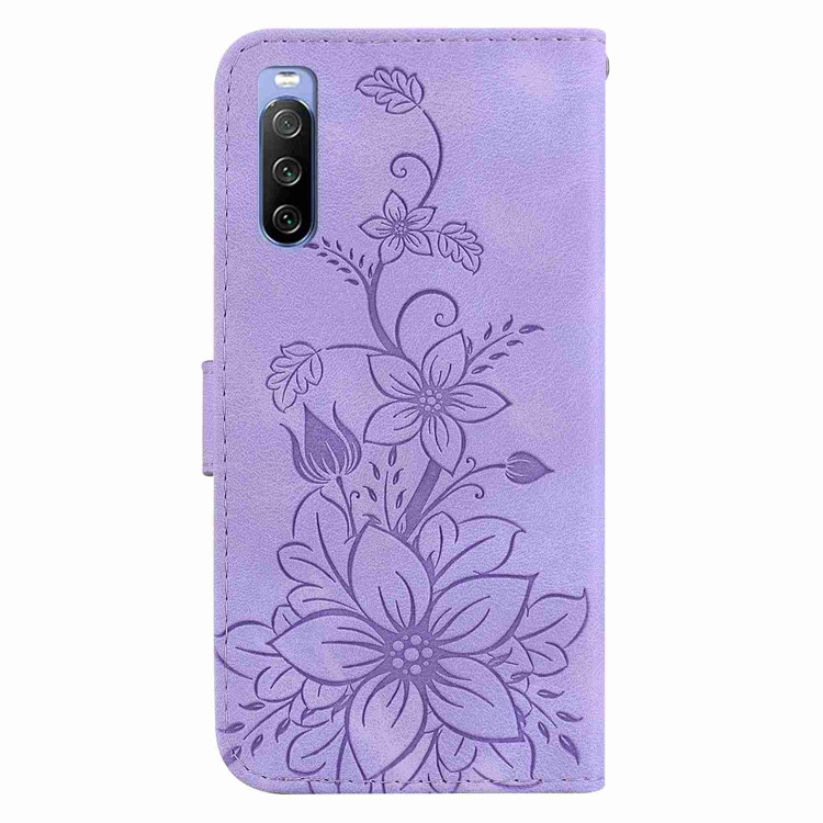 Funda de Cuero En Relieve para Sony Xperia 10 III Lily (Púrpura)