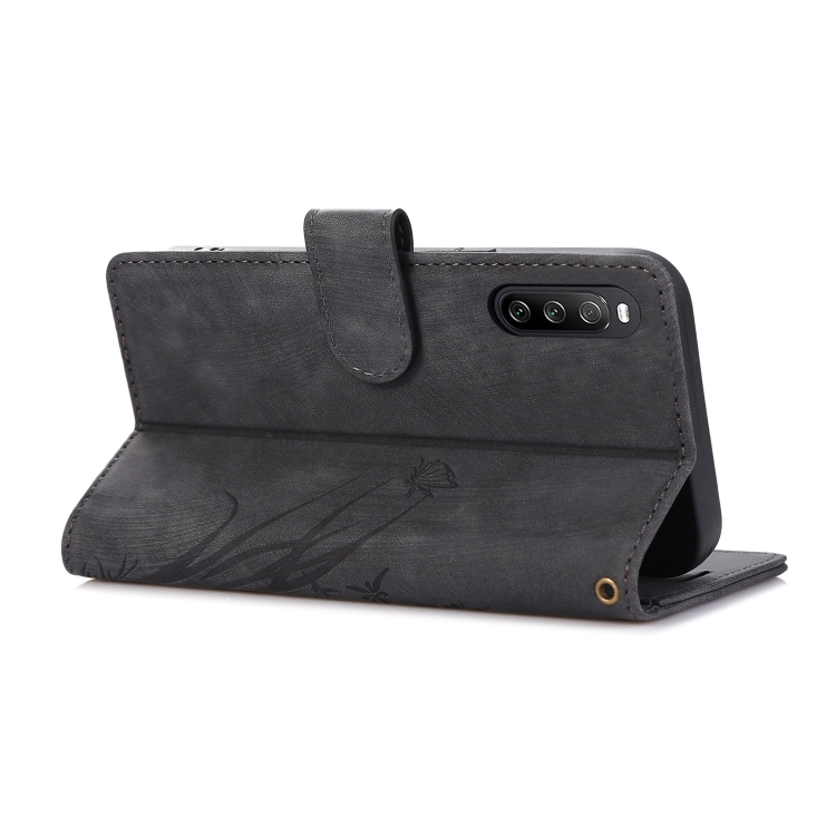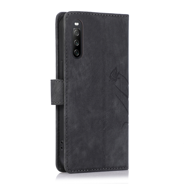Funda para Sony Xperia 10 V 4G (2023) de Cuero con Relieve Mariposa Orquídea (Negro)