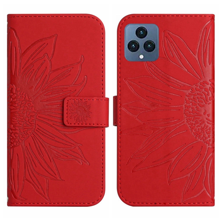 Funda Flip de Cuero para T-Mobile Revvl 6 5G con Cordón y Diseño Sun Flower (Rojo)