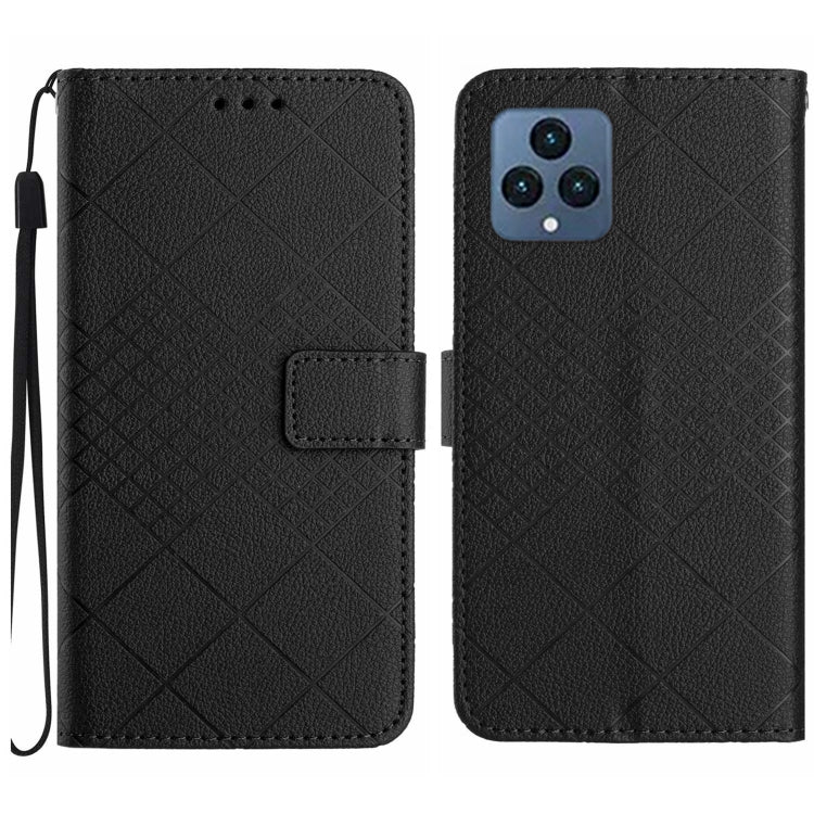 Estuche de Cuero para T-Mobile Revvl 6 5G y T Phone 5G con Textura de Rejilla Rómbica (Negro)