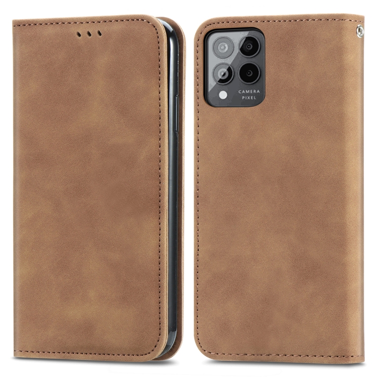 Funda Magnética de Cuero para T-Mobile Revvl 6 Pro 5G Retro Skin Feel (Marrón)