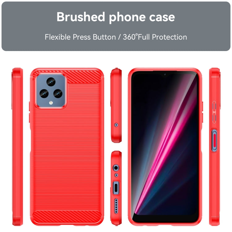 Funda TPU para T-Mobile Revvl 6X 5G con Textura Cepillada de Fibra de Carbono (Rojo)