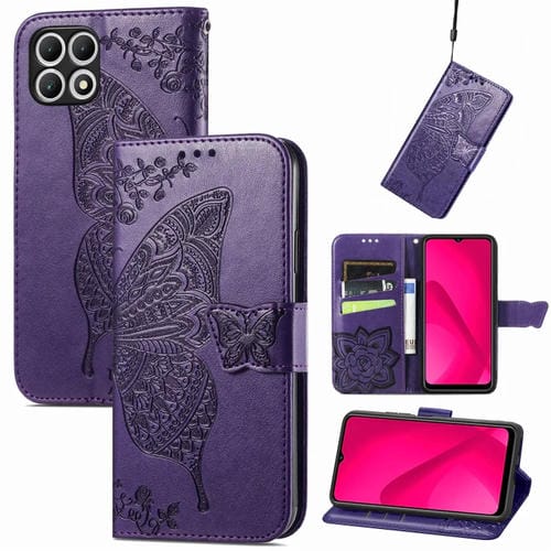 Funda para Teléfono T-Mobile Revvl 7 5G Cuero Relieve Flor y Mariposa (Púrpura)