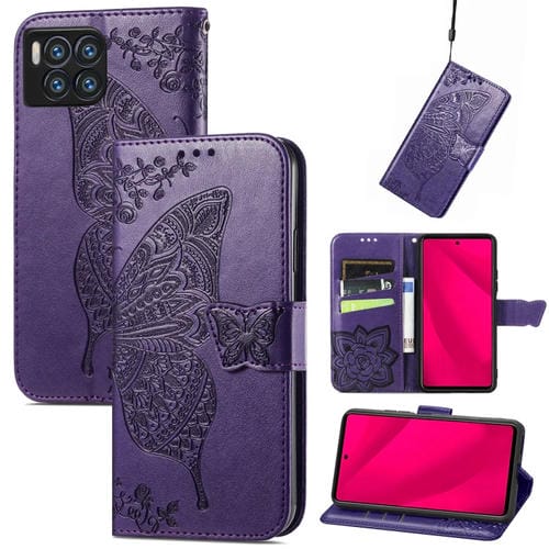 Funda para Teléfono T-Mobile Revvl 7 Pro 5G Cuero con Relieve Flor y Mariposa (Púrpura)