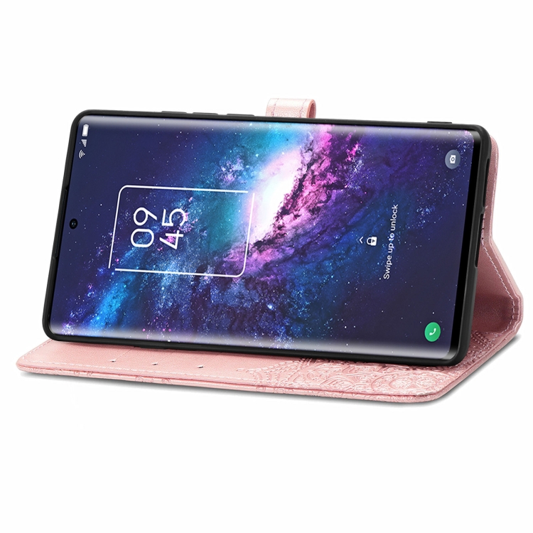 Funda de Cuero Horizontal para TCL 20 Pro 5G Mandala Flower con Soporte, Ranura para Tarjeta, Billetera y Cordón (Oro Rosa)