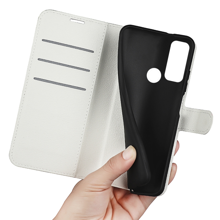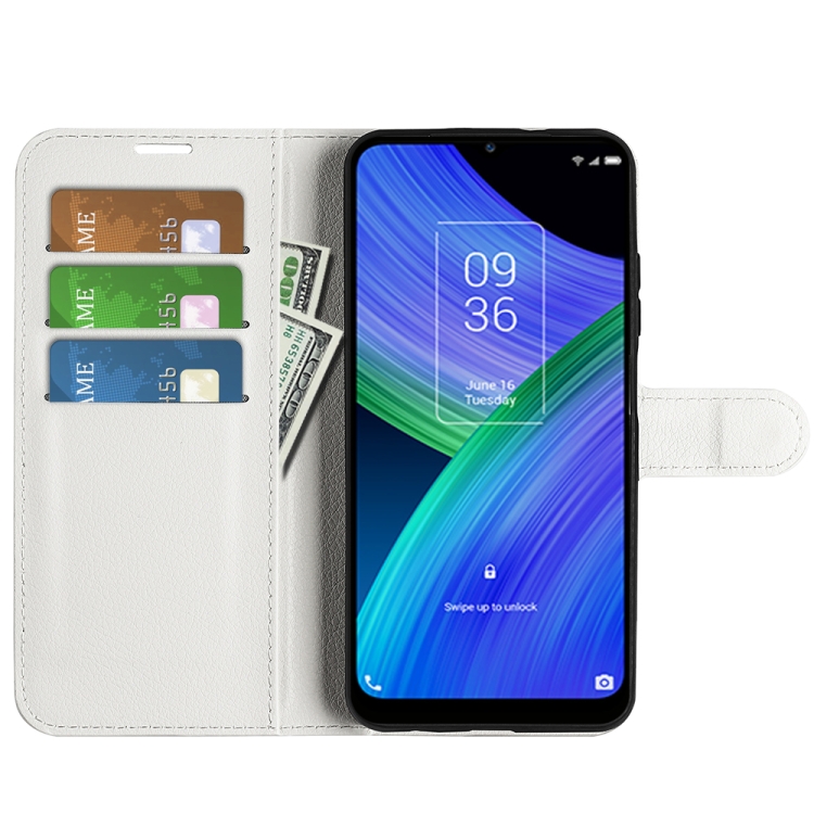 Funda Protectora Horizontal Flip para TCL 20 R 5G con Soporte y Ranuras para Tarjetas y Billetera (Blanco)