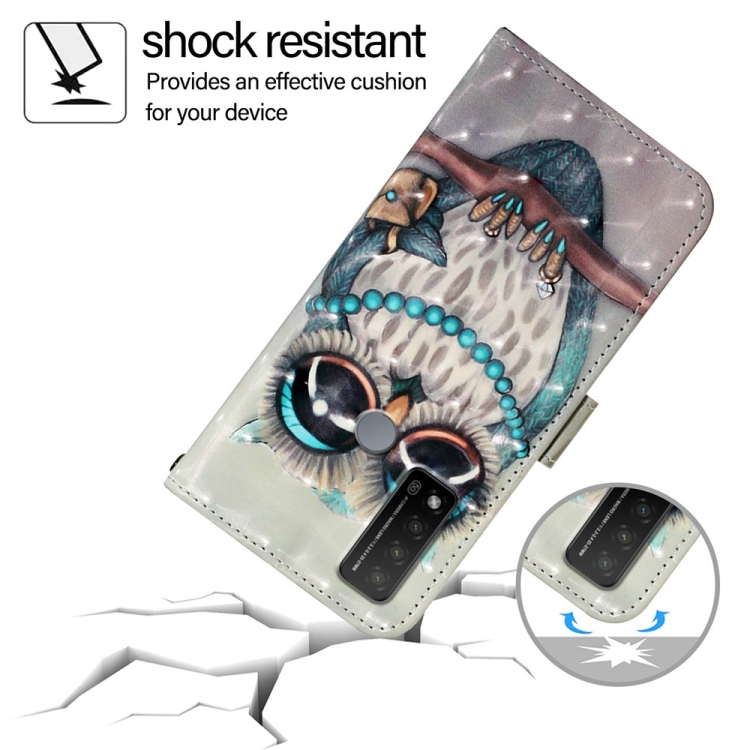 Funda de Cuero con Tapa Horizontal para TCL 20 R 5G Pintura 3D (Búho Gris)