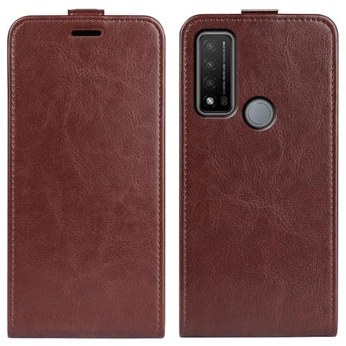 Estuche protector de cuero vertical para TCL 20 R 5G R64 con textura, tragamonedas y marco de fotos (Marrón)