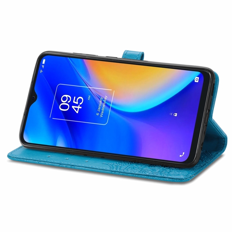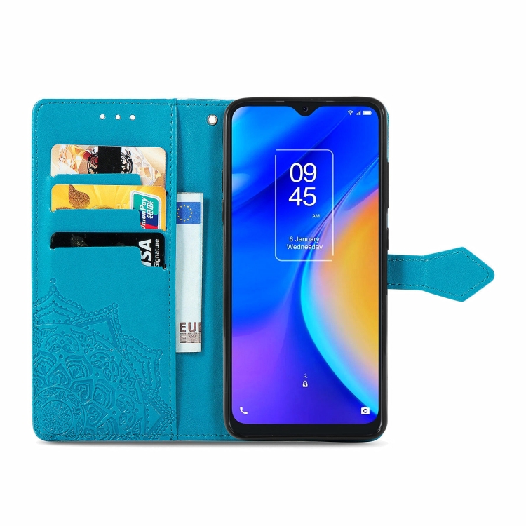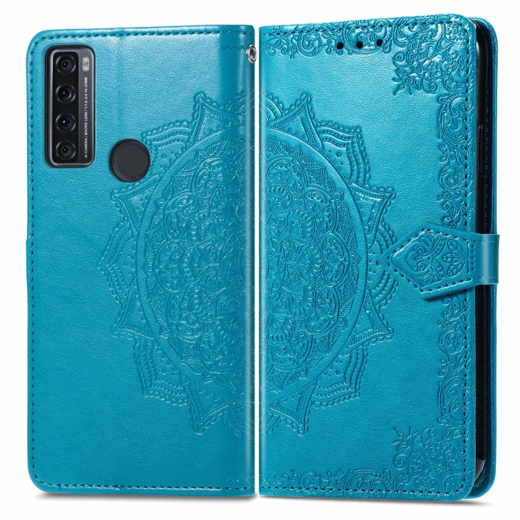 Funda de Cuero Horizontal Flip para TCL 20 Se Mandala Flower con Soporte, Ranura para Tarjeta, Billetera y Cordón (Azul)