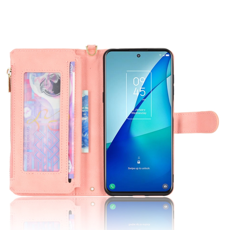Funda de Cuero para TCL 20S / 20 5G / 20L con Cremallera Litchi (Rosa)