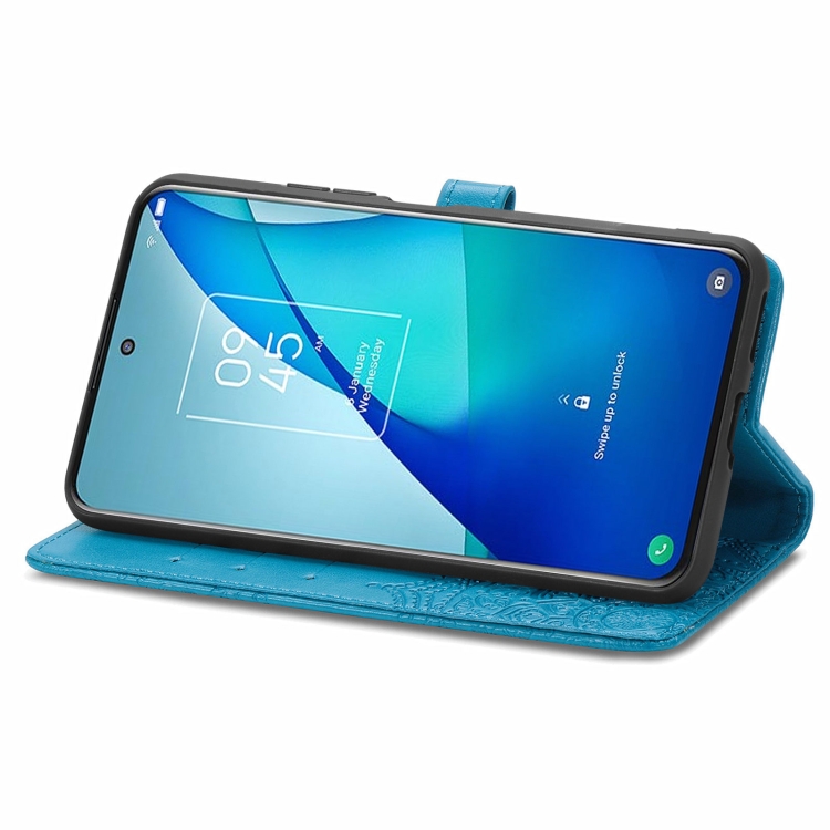 Funda de Cuero Horizontal Flip para TCL 20S Mandala Flower con Soporte, Ranura para Tarjeta, Billetera y Cordón (Azul)