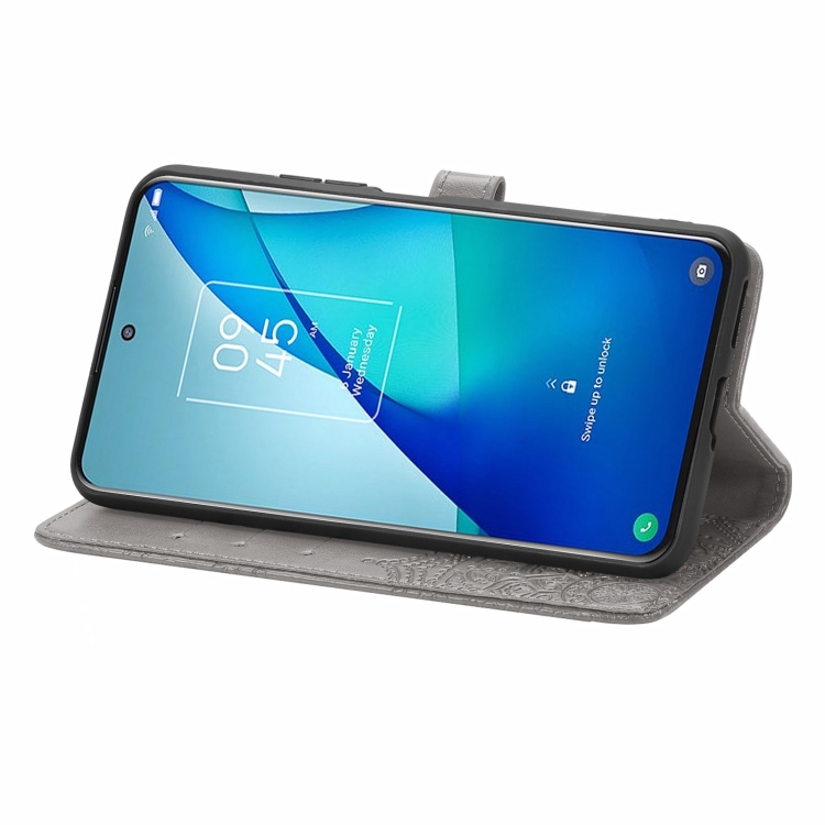 Funda de Cuero Horizontal Flip para TCL 20S Mandala Flower con Soporte, Ranura para Tarjeta, Billetera y Cordón (Gris)