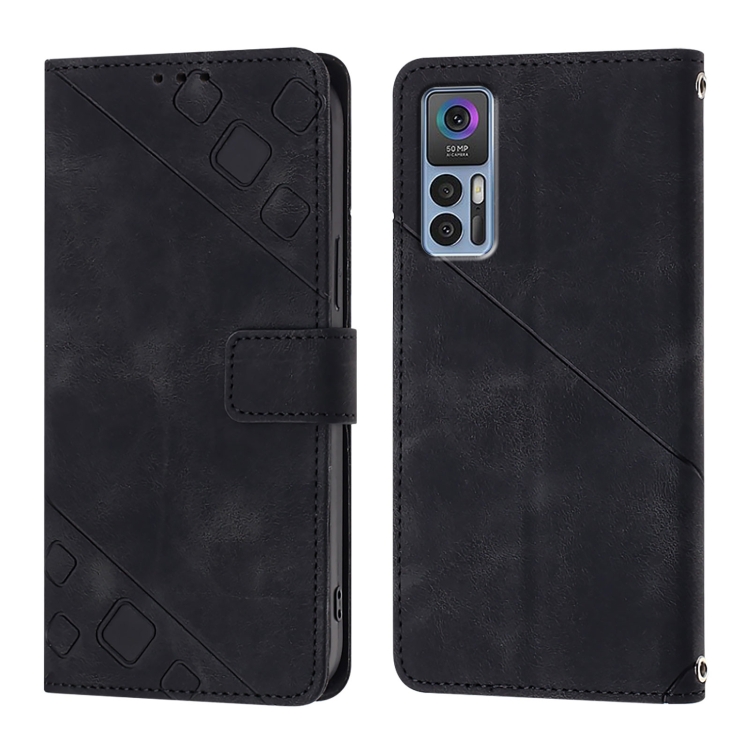 Funda de Cuero Skin Feel para TCL 30 4G en Relieve (Negro)