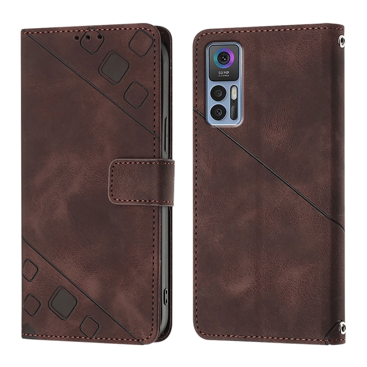 Funda de Cuero Para TCL 30 5G Skin Feel en Relieve (Marrón)