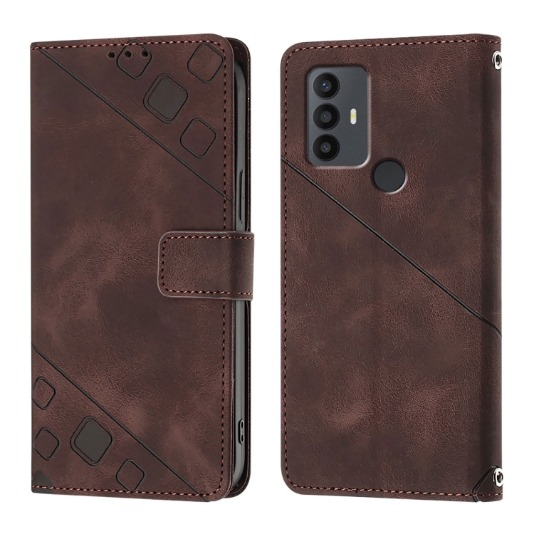 Funda de Cuero para TCL 30 Se Skin Feel Teléfono En Relieve (Marrón)