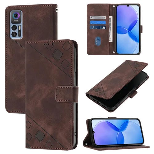 Funda de Cuero Skin Feel para TCL 30+ en Relieve (Marrón)