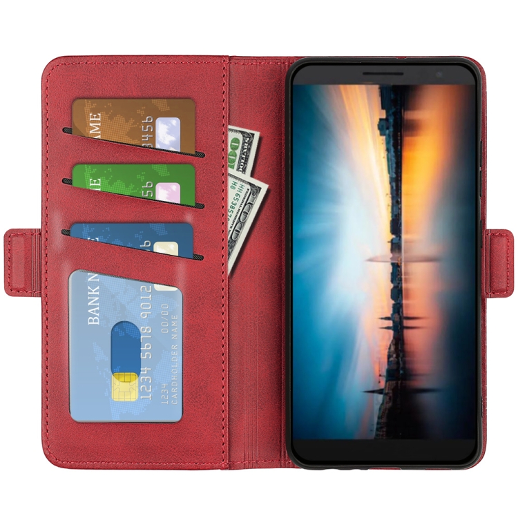 Funda de Cuero Horizontal para TCL 303 con Hebilla Magnética Doble Lado (Rojo)