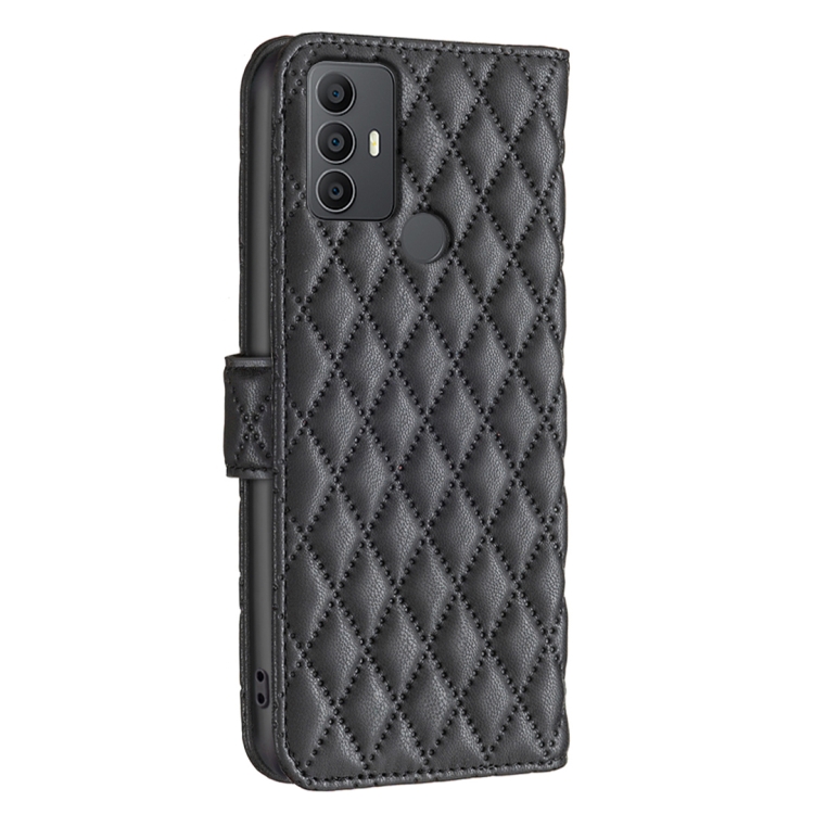 Funda de Cuero con Tapa para TCL 305/306/30 Se Diamond Lattice Wallet (Negro)