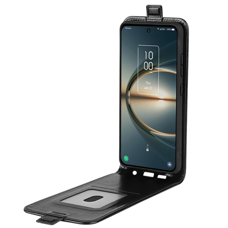 Funda de Cuero Vertical para TCL 30V 5G R64 Texture (Negro)