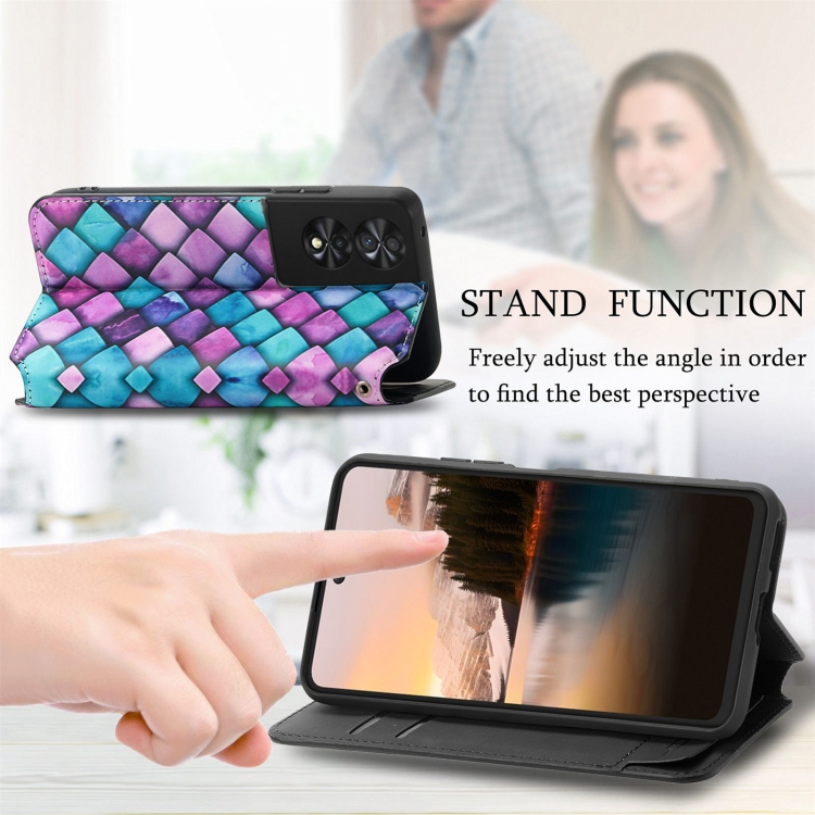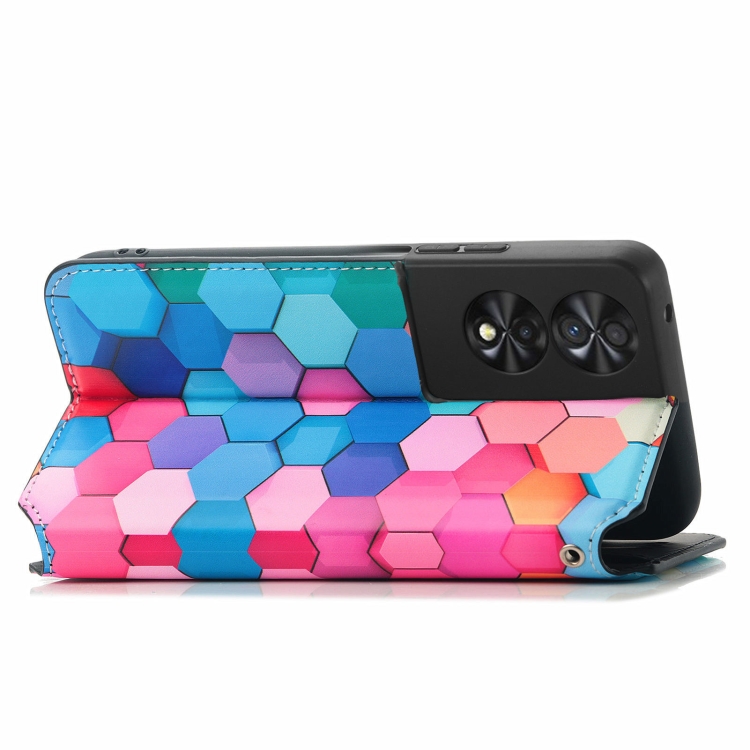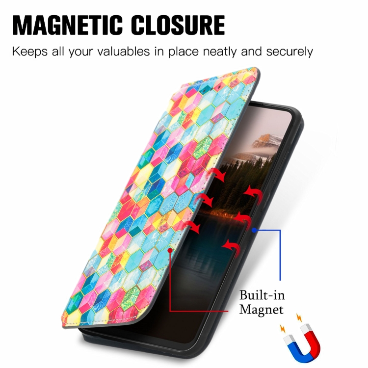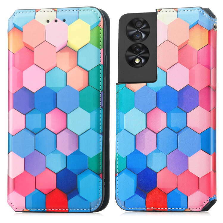 Estuche de Cuero Magnético Caseneo para TCL 40 Nxtpaper 5G (Cuadrados de Colores)