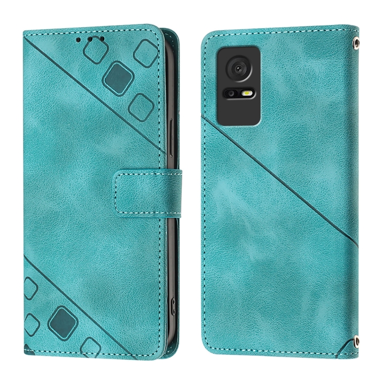 Funda de Cuero Skin Feel para TCL 405/406/408 En Relieve (Verde)