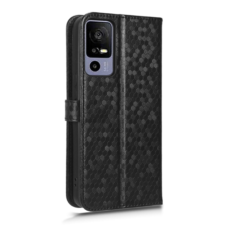 Funda de Cuero para TCL 40R con Textura de Punto de Panal (Negro)